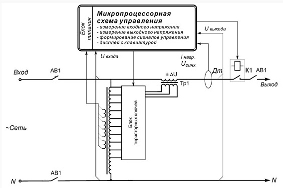 Для обеспечения вывода информации о работе стабилизатора и изменения регулируемых параметров все стабилизаторы имеют цифровой светодиодный дисплей с 2-х кнопочной клавиатурой. Клавиатура дисплея позволяет вывести на экран информацию о величине входного и выходного напряжения стабилизатора, мощности, подключенной к стабилизатору нагрузки, температуре силовых ключей. С помощью клавиатуры производится также установка требуемого выходного напряжения (в диапазоне 210 В…230В с дискретностью 2В) и точности регулирования.
