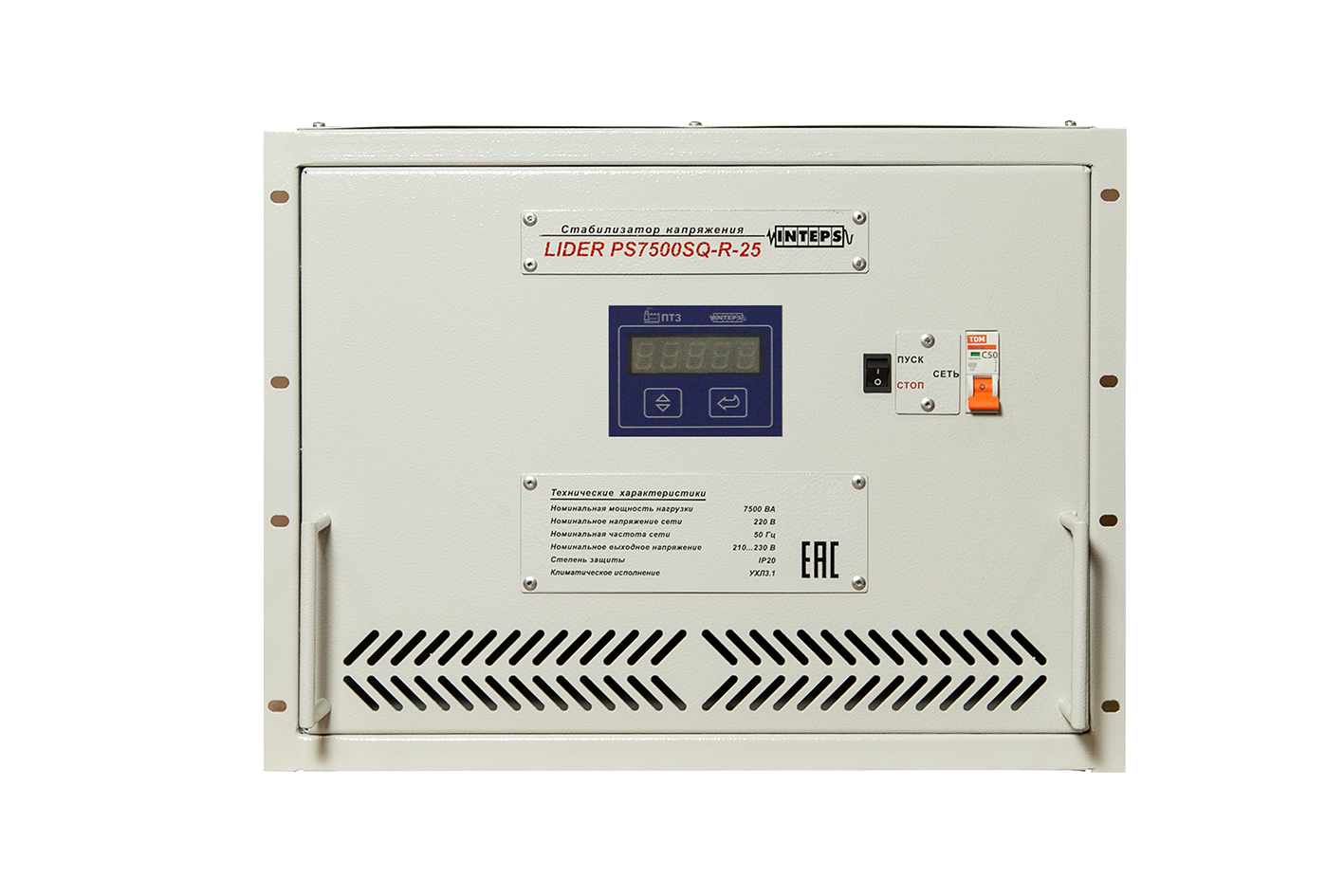- Номинальная мощность нагрузки: 7 500 ВА